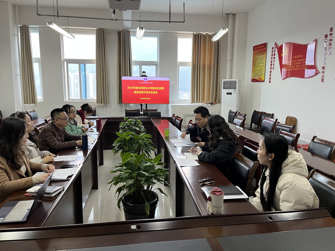 2025年2月27日,马克思主义学院党总支2024年度民主生活会顺利召开,会议由马克思主义学院党总支书记、院长陈刚同志主持。学校党委副书记刘凯同志,纪委办公室副主任、纪检监察处副处长董春华,纪委办公室教师刘青思莅临会议督导,马克思主义学院形势与政策党支部组织委员邓丽华列席会议。
