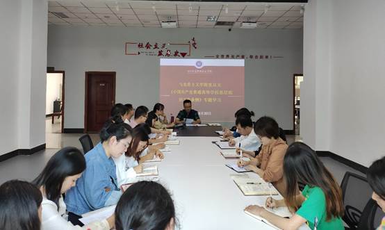 会议组织开展了《四川省高校党的建设工作会议精神》《中国共产党普通高等学校基层组织工作条例》《习近平在陕西榆林考察时的讲话精神》《习近平给全国高校黄大年式教学团队代表的回信》专题学习,并指出,作为新时代思政课教师,要时刻牢记岗位职责,对标“四有”好老师,苦练内功,扎实学识,做到做到学为人师、行为世范。